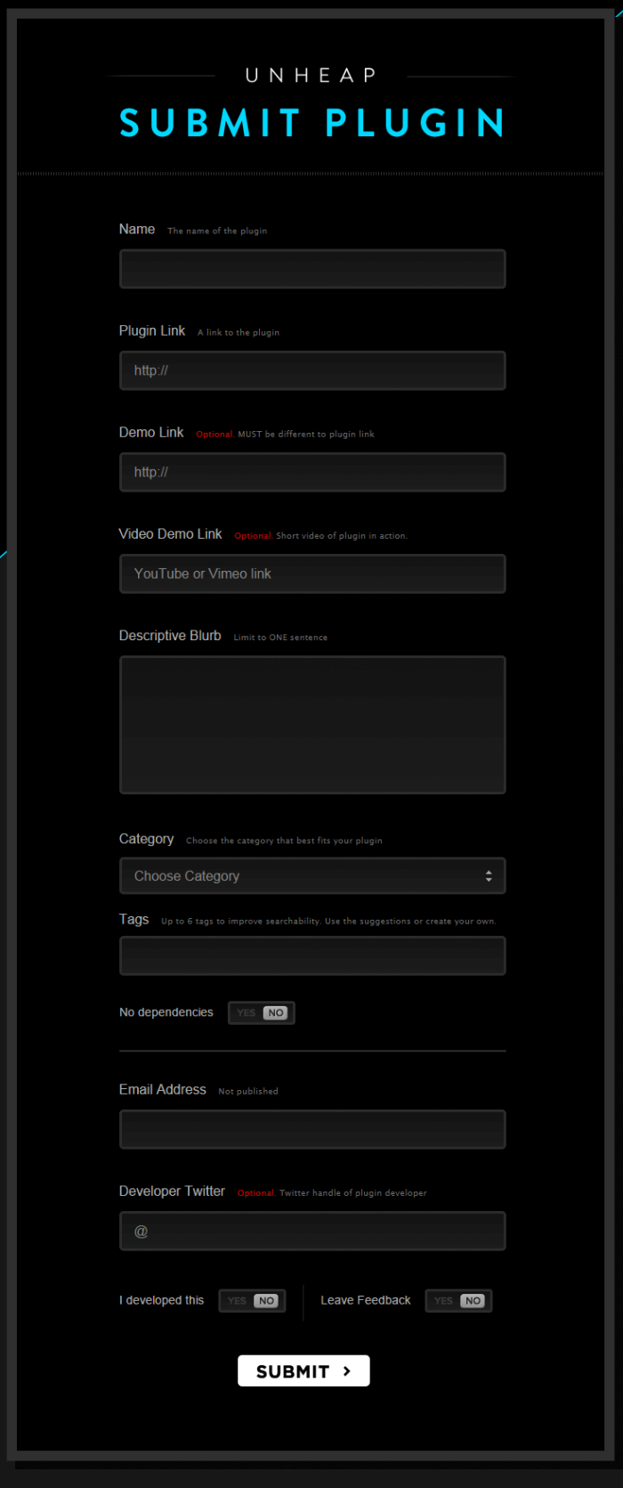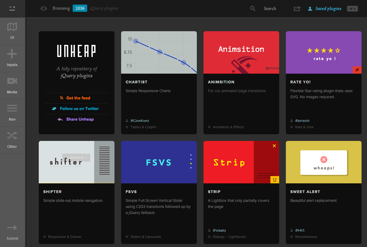 Unheap est à l'origine un projet interne ayant le but de recenser des plugins jQuery tout en favorisant leur accès et leur organisation (catégories, tags, ...).