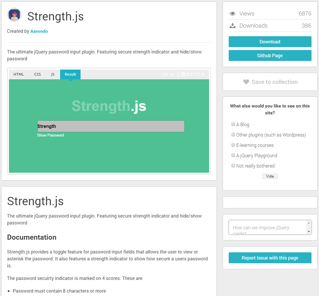 Dans le même genre que Unheap, décrit dans un précédent article, jQuery Cards se distingue par son interface claire et sa volonté d'avoir des plugins complet. J'entends par là, qu'ils aient une documentation précise, un lien vers une démo ou un snippet CodePen.