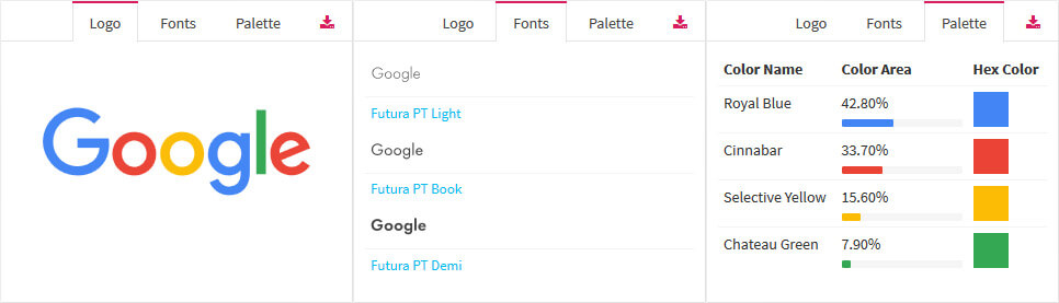 Le troisième onglet d'un bloc contenant un logo vous présente la répartition de ses couleurs principales.