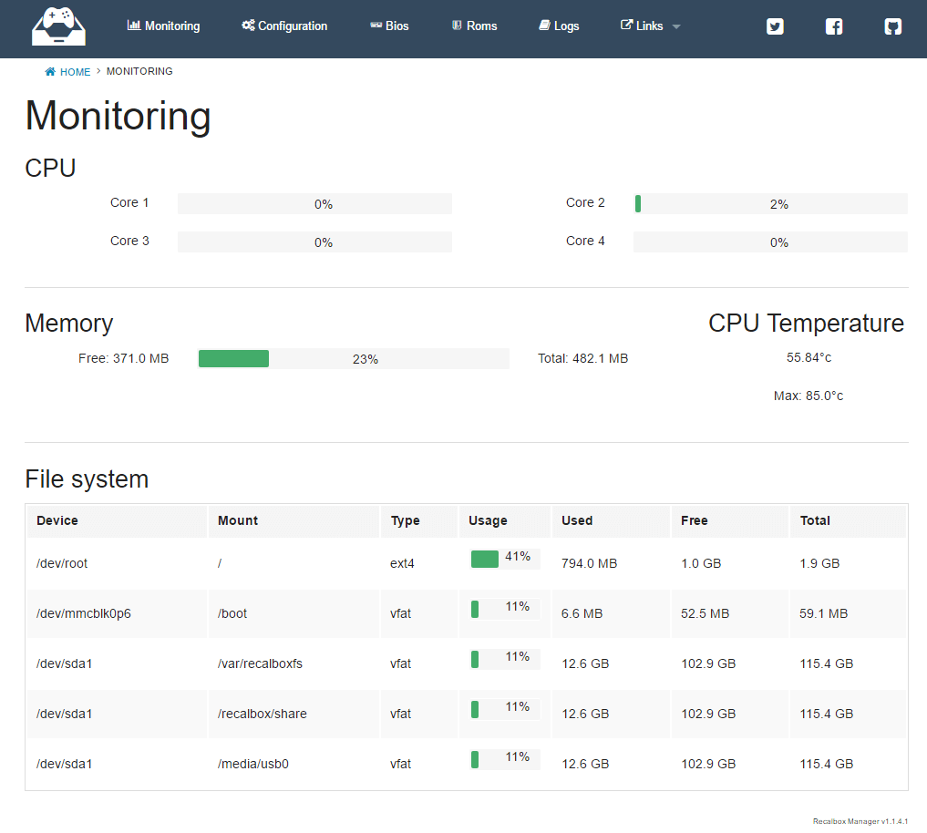 En se connectant à votre machine Recalbox via l'API dédiée, l'interface vous donne la possibilité de gérer totalement vos roms et diverses configurations. Une partie monitoring est également de la partie. De plus, vous pourrez même lancer les jeux depuis cette interface !
