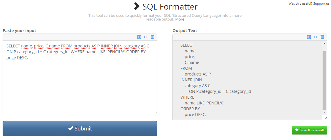 Free Formatter - SQL Formatter