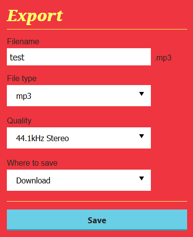 L'export de votre création se fera en mp3 ou wav, stéréo ou mono. Le fichier peut être téléchargé ou envoyé sur votre Dropbox.