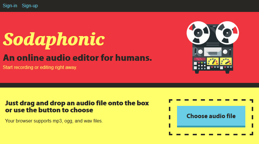 Sodaphonic est un éditeur de fichiers audio en ligne qui va vous permettre de modifier vos fichiers audio très simplement en quelques clics.