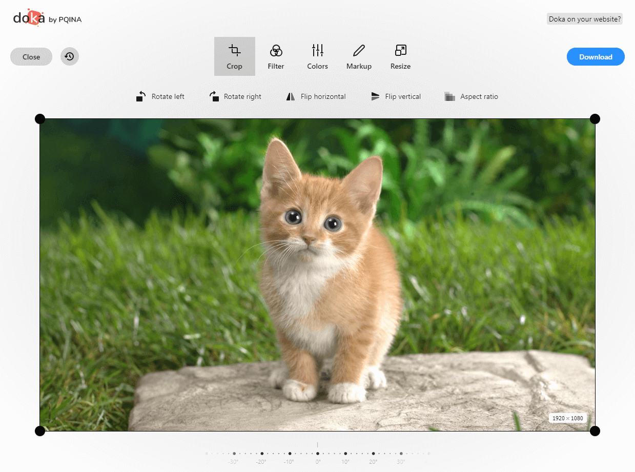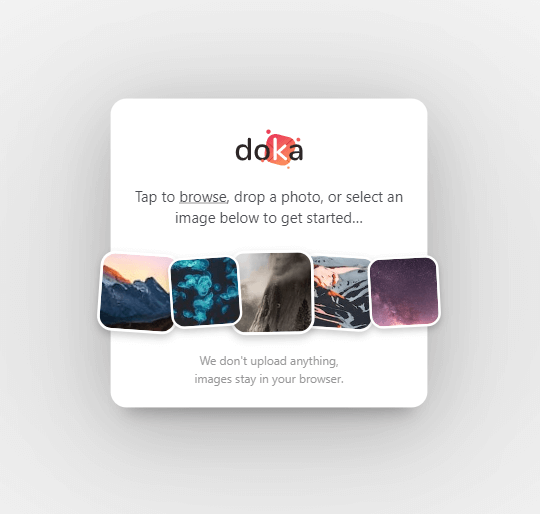 Doka est à l'origine un plugin Javascript, pouvant se greffer dans votre application, permettant de modifier des images directement au moment de l'upload de celle-ci. Le créateur de ce plugin a conçu un éditeur d'images en ligne, mettant donc à disposition de n'importe quel internaute de modifier et annoter ses images.