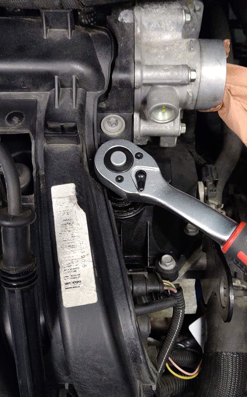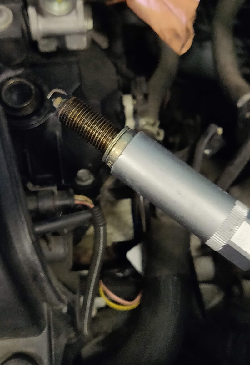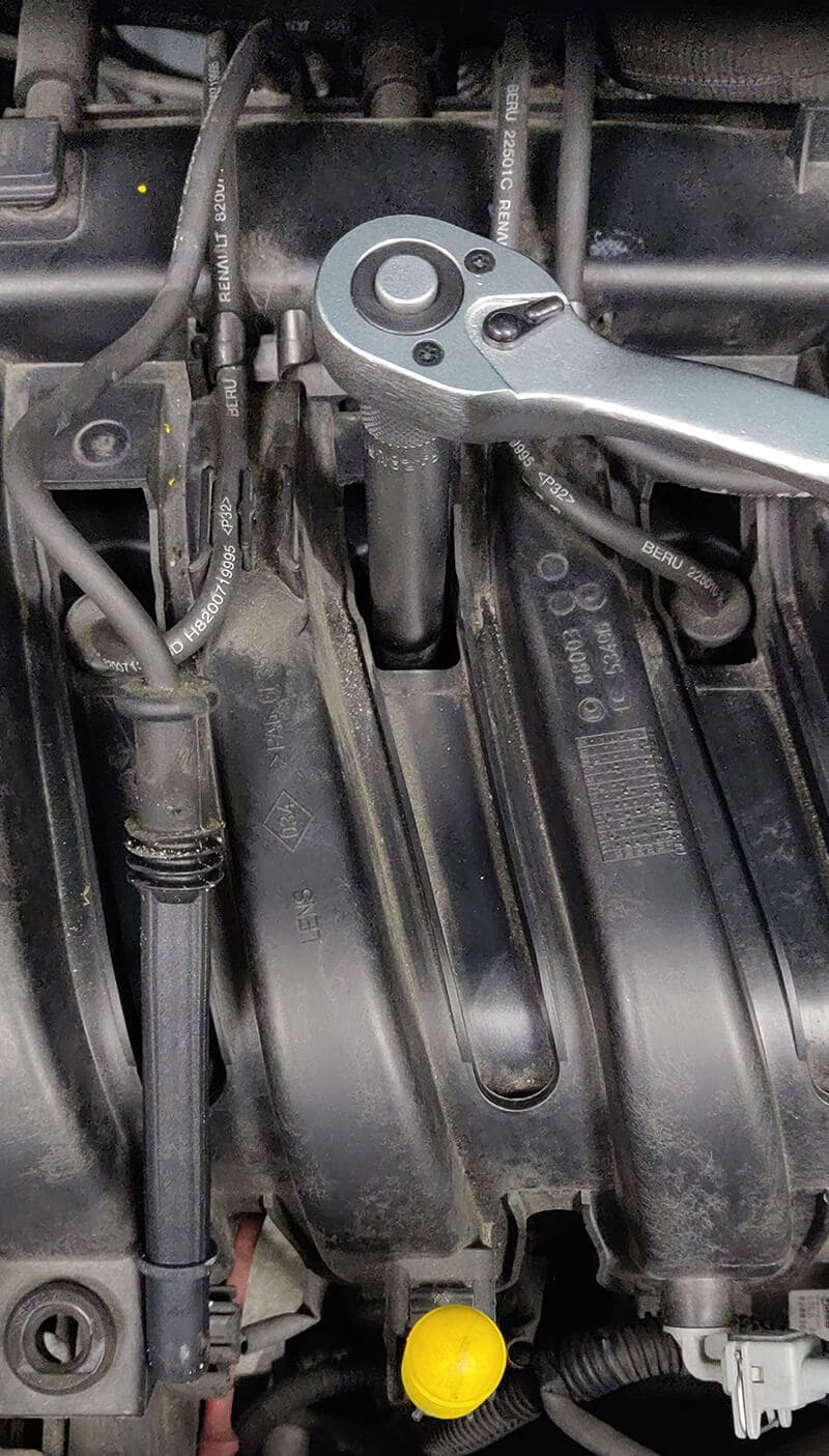 Avec votre cliquet et la douille de 14 mm, dévissez la bougie :