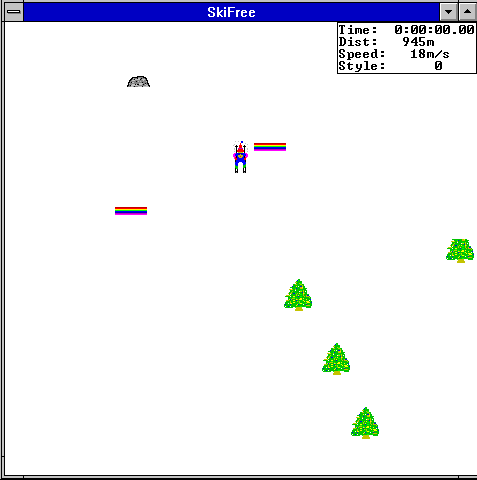 Ce jeu de surf est directement inspiré du classique jeu SkiFree, dont vous pourrez trouver une version jouable sur navigateur via une simple recherche Internet :