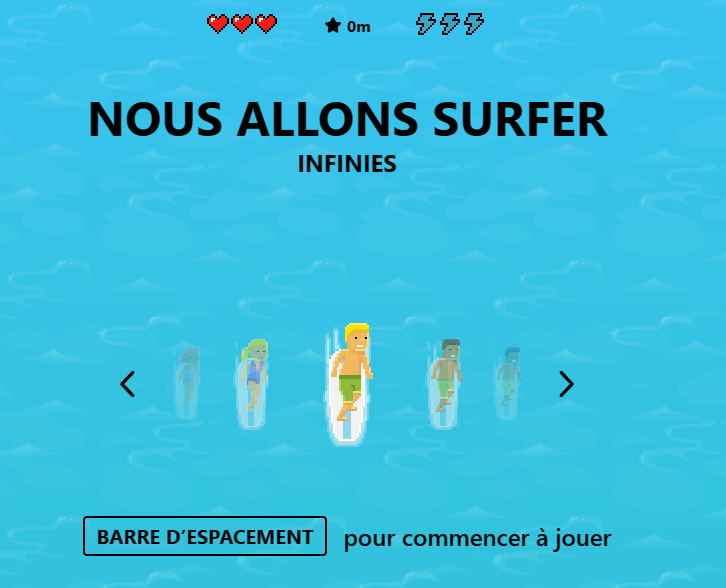 Pour commencer à jouer, choisissez votre surfeur et validez avec la touche Espace.