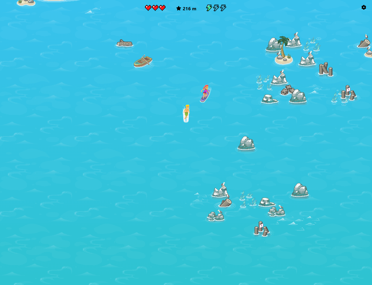 La durée de vie du personnage peut être prolongée en collectant des coeurs. Vous pouvez également récolter des éclairs qui sont des boosts (touche F du clavier).